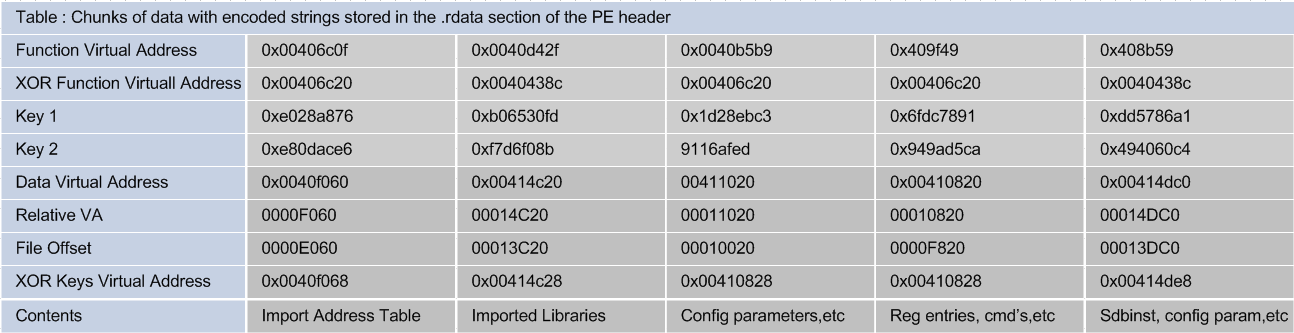 After reading the values, the C&C addresses are converted to ASCII and the value is returned by the wvnsprintfA() API using the format string “%d.%d.%d.%d:%d”. The list of C&C for this sample are: