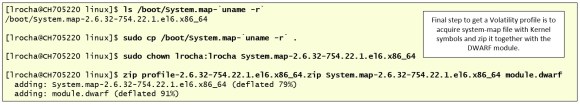 Finally, I acquired the system-map file and zipped it together with module.dwarf. This zip file needs to be placed in the volatility profiles folder or you can place it on a different folder and specify it in the command line.