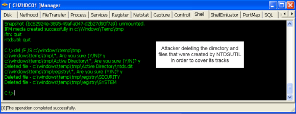 Finally, the attacker might delete the artifacts that were left behind on the file system as consequence of running “ntdsutil.exe”.