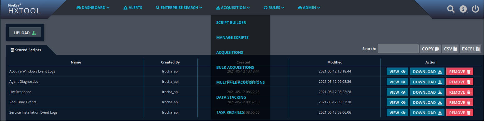 - Download the Live Response Acquisition using HXTool